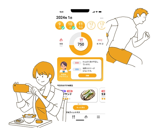独自開発のAI分析により、スマートデバイスの連携情報から身体活動内容を精密に記録。理想の体型に向けたアドバイスをします。